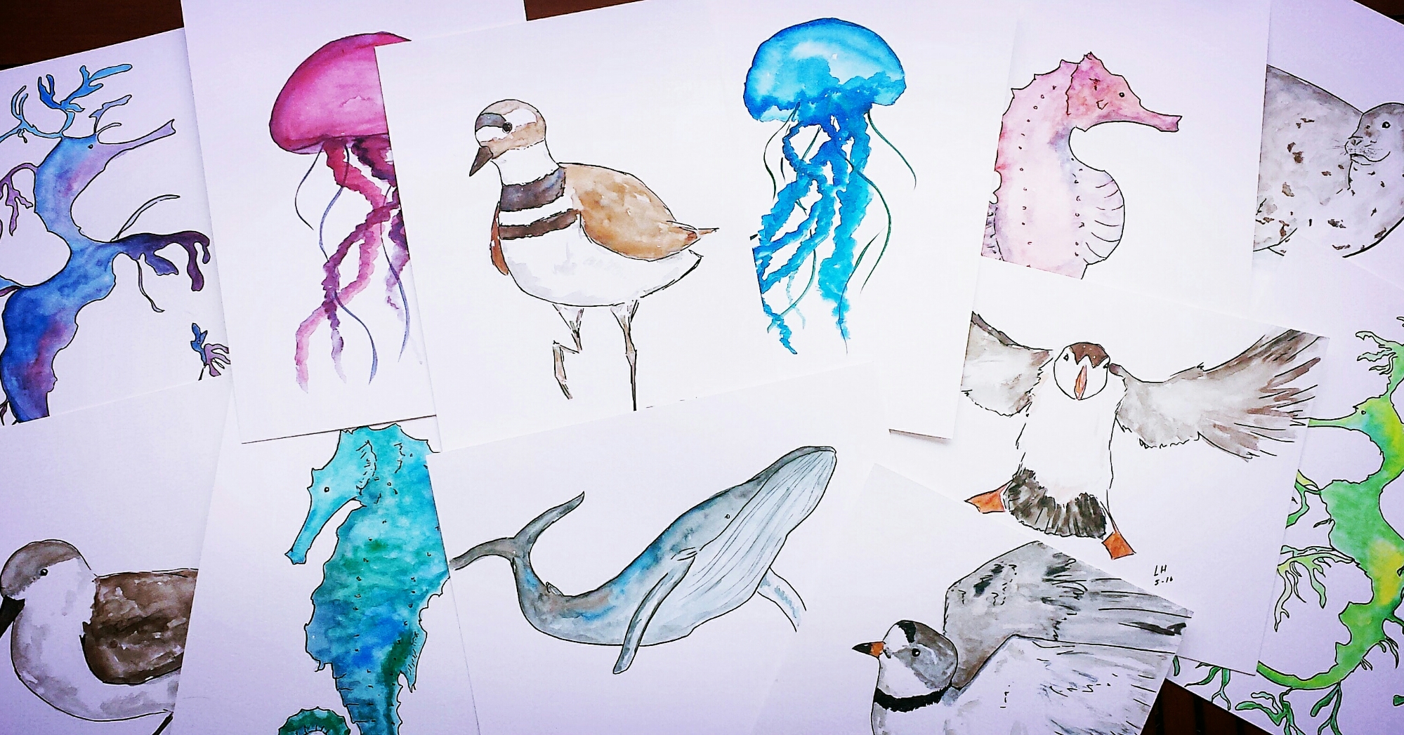 Nautical Series May 22, 2016 Watercolor sketch set of postcards and prints just about done. Jellyfish, whale, and the puffin are my favorites. Shhh.. don’t tell the others… Share this: Share on X (Opens in new window) X Share on Facebook (Opens in new window) Facebook Like Loading...