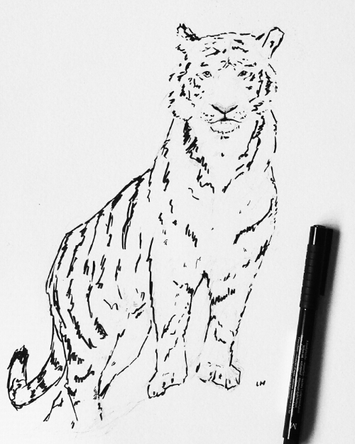 Inkpen Tiger June 20, 2016 Before I finish my sketches with watercolor, there is an inkpen sketch. Tiger inkpen sketch, 9"x12" Share this: Share on X (Opens in new window) X Share on Facebook (Opens in new window) Facebook Like Loading...