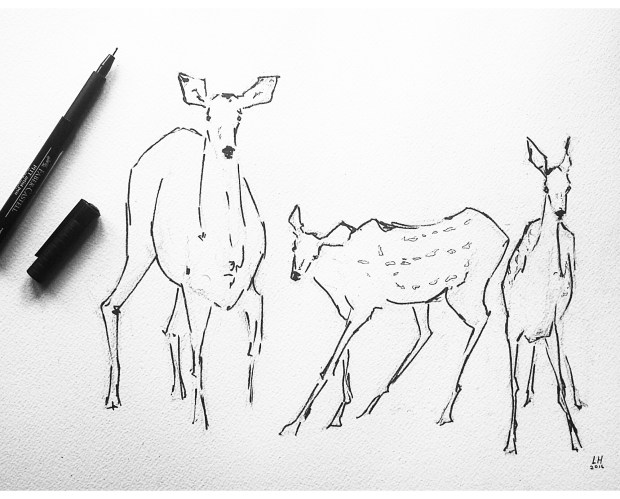It’s happened on more than one occasion – as soon as I start a project, the subject of my creative endeavor makes the time to visit. And I don’t mind. Keep showing up, dear deer.